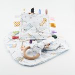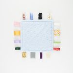 Anyaga pamutvászon és minky, 16db különböző címkével készült.
