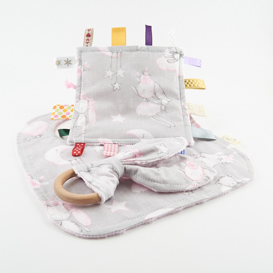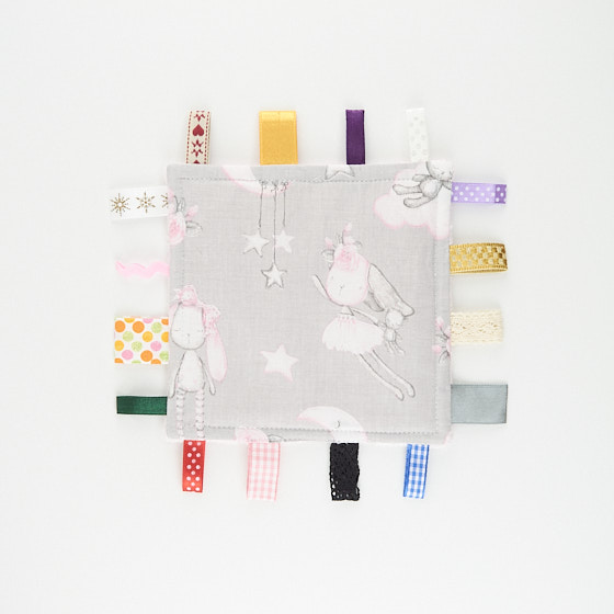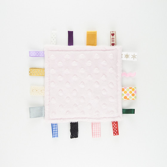 Anyaga pamutvászon és minky, 16db különböző címkével készült.